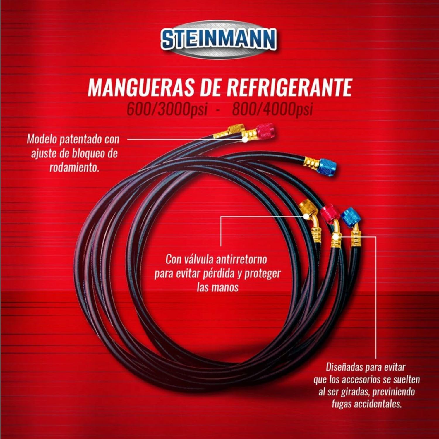 Mangueras para Manómetros 23336, Punta 45° 1/4”, 600/3000 PSI, 180 cm, Sin Fugas